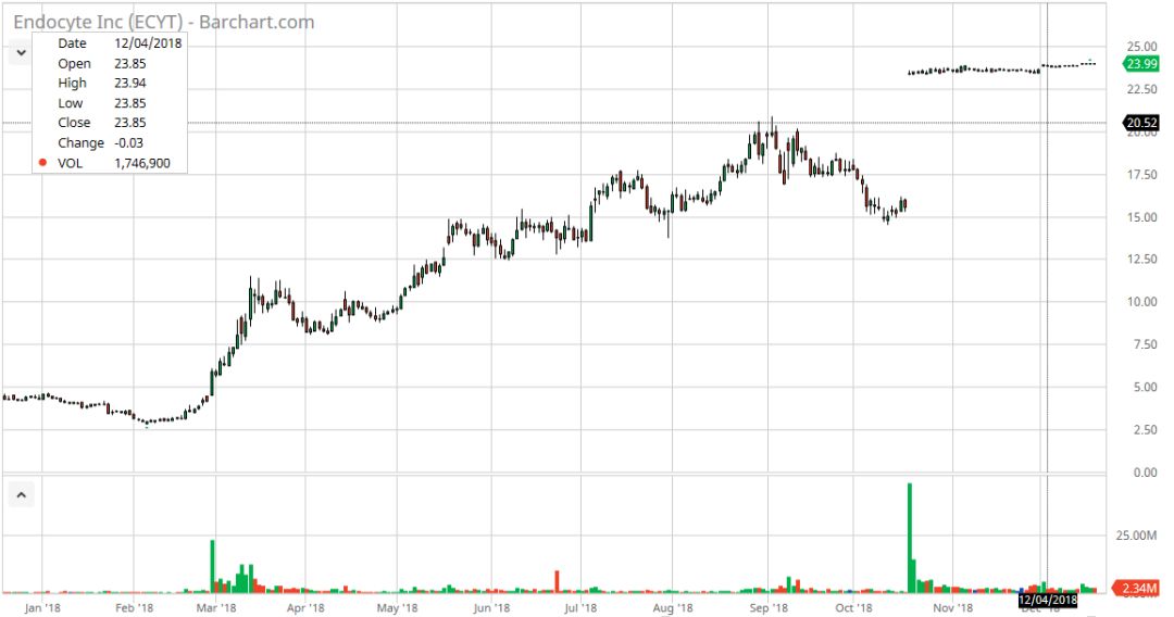 正所谓有钱才是硬道理。小药股不怕烂,只要账面有钱,买对合适的临床资产,野鸡也能变凤凰,20倍股ECYT就是这么来的。公司当时临床失败股价跌到$2块以下,妥妥的垃圾股。但是奈何公司很有钱,可以买买买。运气也不错,买进的临床资产最后刮奖成功,公司也是被诺华以每股$24的价格收购。你看,这是多么圆满的大结局。
